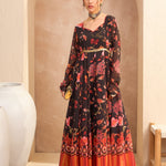 Women Black Floral Georgette Anarkali Kurta