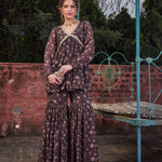 Women Black Floral V Neck Peplum Top With Sharara Pants