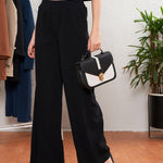 Black Front Darted Palazzo Pants, in Karera Crepe fabric, Unlined, Full Length, Comfort Fit, Slip On, Straight Hemline and features Front Dart Detail