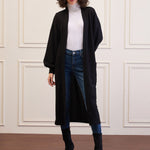 Black Front Open Balloon Sleeve Shrug, in Flat Back Winter Rib fabric, Unlined, Below Knee, Comfort Fit, No Closure, Straight Hemline and features Pocket Detail At Front