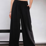Black Front Pleated Loose Fit Korean Pants, in Canton Knit fabric, Unlined, Full Length , Comfort Fit, Button Closure, Straight Hemline and features Front Pleat Detail
