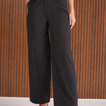 Black Front Pleated Straight Fit Pants, in Aston Martin Twill fabric, Unlined, Full Length, Straight Fit, Zipper Closure, Straight Hemline and features Self Fabric Belt Detail At Waist