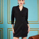 Women Black Glitter Double Breasted Blazer Dress
