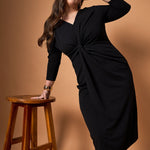 Women Black Glitter Side Knot Midi Dress