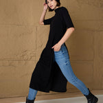 Women Black High-Neck High Slit Sweater