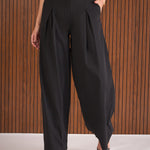 Black High Rise Flared Pants, in Aston Martin Twill fabric, Unlined, Full Length, Comfort Fit, Zipper Closure, Straight Hemline and features Eyelet Detail Belt At Waist