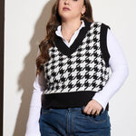 Black Houndstooth V-Neck Sweater Vest, in Acrylic fabric, Unlined, Regular Length, Regular Fit, No Closure, Straight Hemline and features Houndstooth Pattern