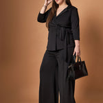 Women Black Knotted Wrap Top With Straight Pants