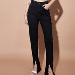 Women Black Mid Rise Skinny Fit Slit Jeans