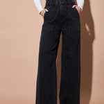 Black Paper Bag Waist Straight Jeans, in Denim fabric, Unlined, , Comfort Fit, Button Closure, Straight Hemline and features Paper Bag Waist