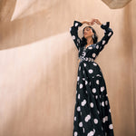 Women Black Polka Dot Waist Cut-Out Maxi