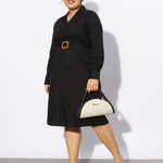 Women Black Poplin Belted Shirt Dress