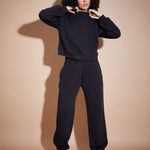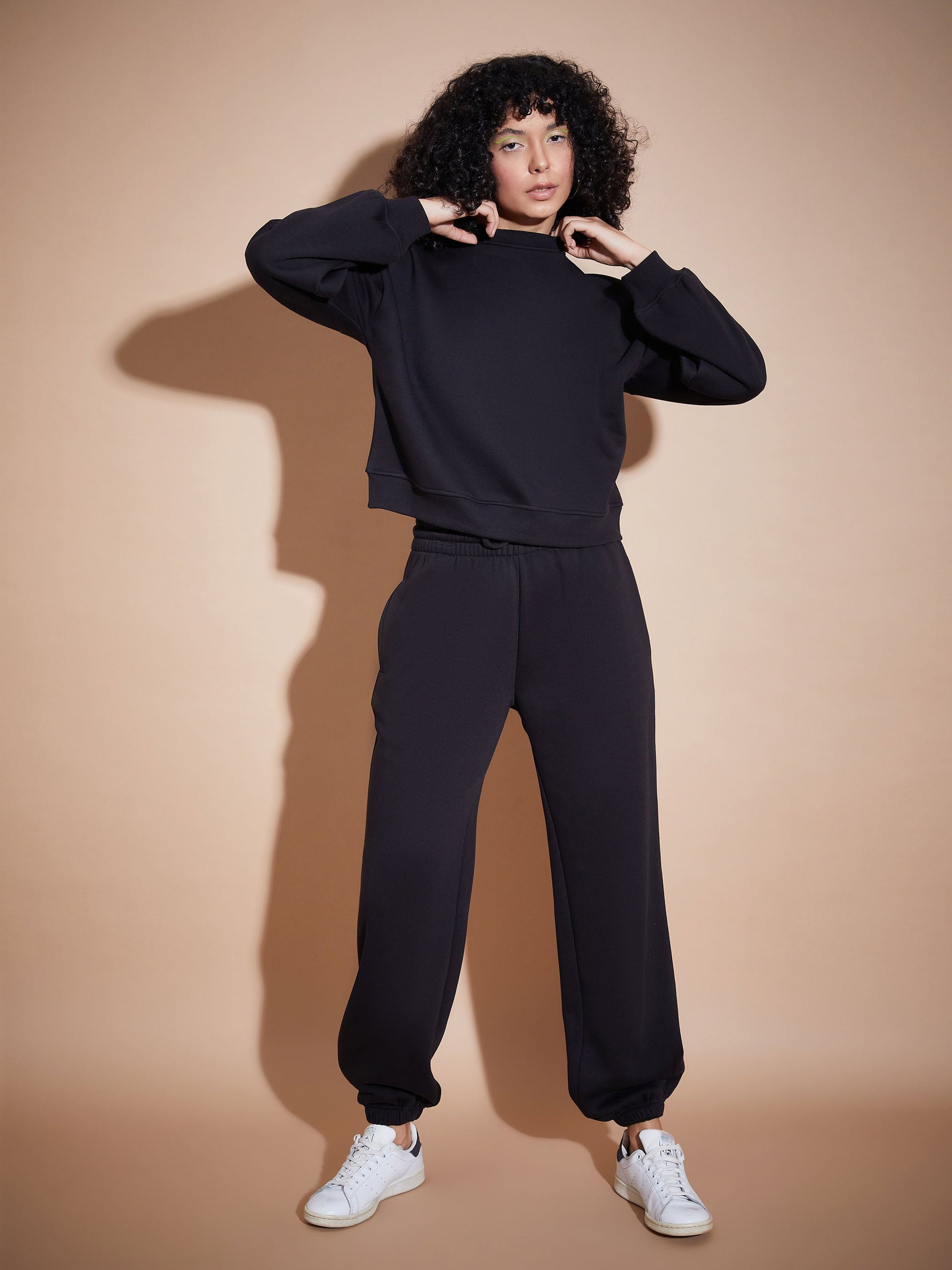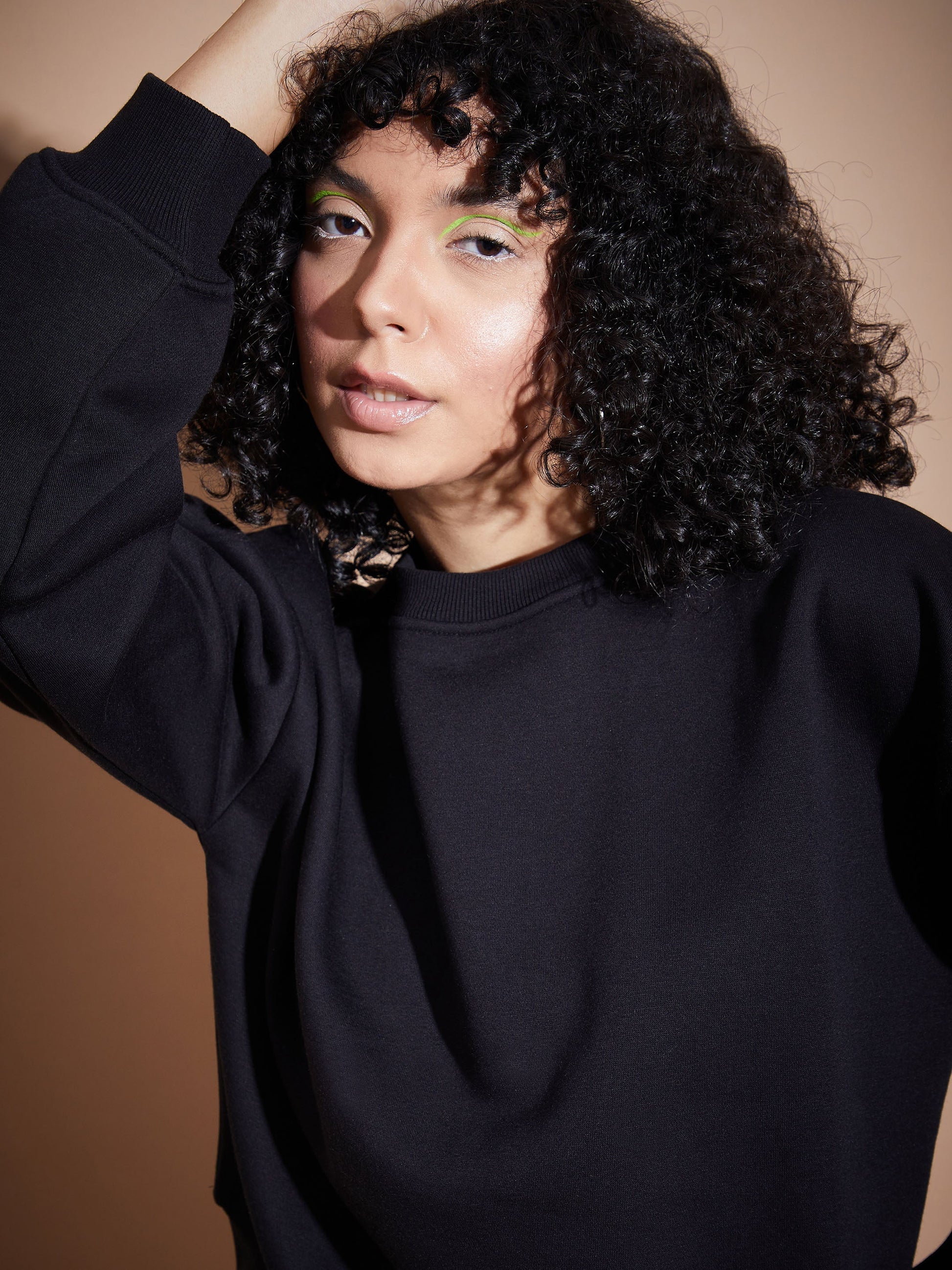 Black Premium Fleece Oversized Sweatshirt With Joggers, in Fleece fabric, Unlined, Waist Length, Oversize Fit, No Closure, Straight Hemline and features Rib Detail At Neck, Sleeves & Hem