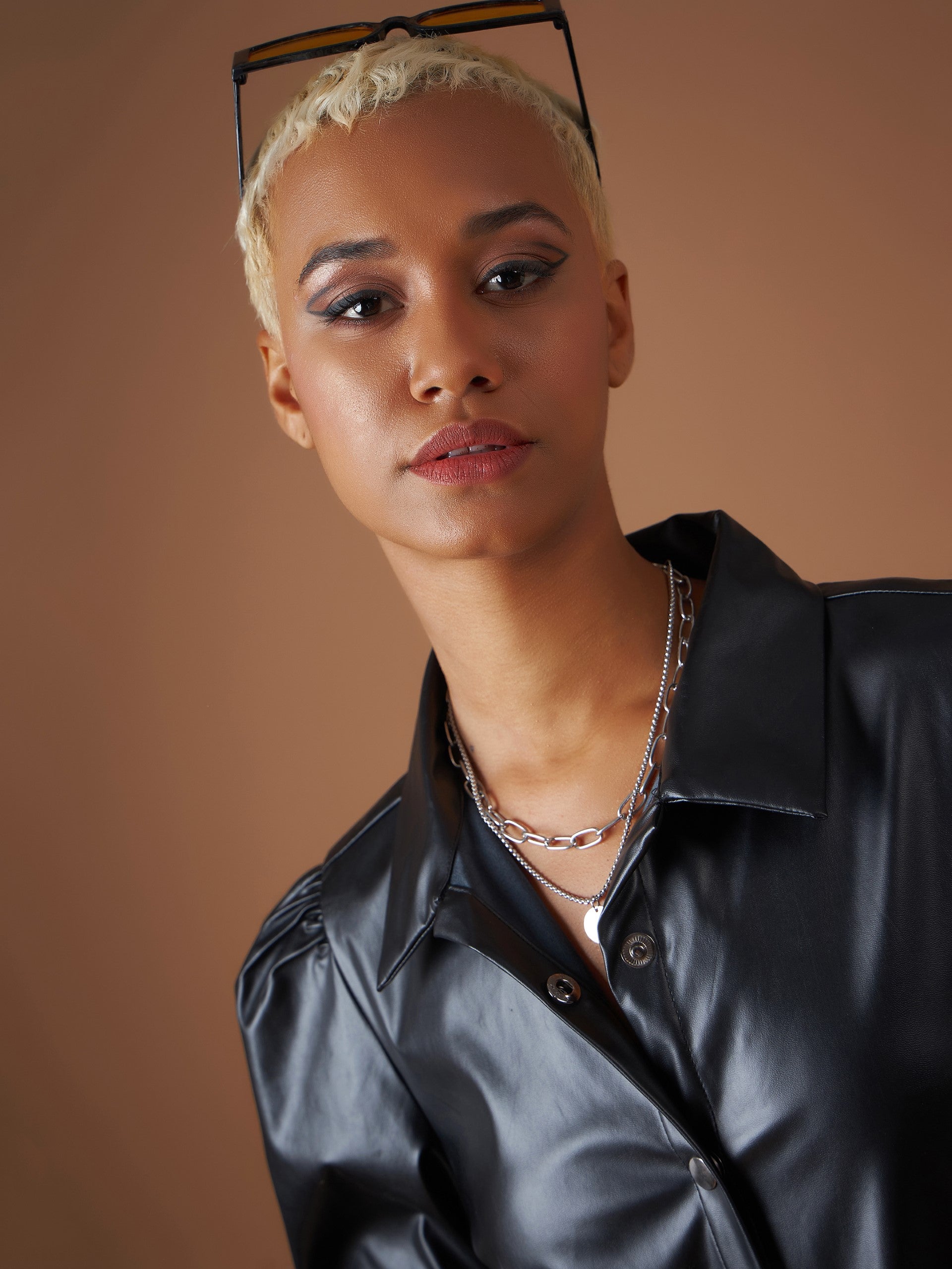 Black PU Shirt Dress, in PU fabric, Unlined, Above Knee, Shirt, Button Closure, Straight Hemline and features Metal Button Closure