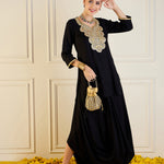 Women Black Rayon Embroidered Short Kurta With Dhoti Skirt