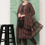 Women Black & Red Floral Printed Pure Cotton Kurta With Trousers & With Dupatta