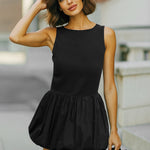 Black Rib Balloon Hem Detail Short Dress, in Rib fabric, Unlined, Above Knee, Slim Fit, NA, Straight Hemline and features Self Design