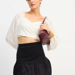 Black Rib Balloon Hem Mini Skirt, in Rib fabric, Poly Knit Lining, Above Knee, Comfort Fit, NA, Straight Hemline and features Self Design