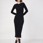 Black Rib Bodycon Midi Dress, in Rib fabric, Unlined, Below Knee, Slim Fit, No Closure, Straight Hemline and features Self Ribbed Design