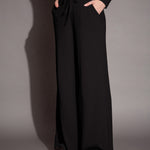 Women Black Rib Drawstring Pants