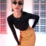 Women Black Rib Full Sleeve ACTIVE Crop Top