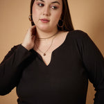 Black Rib Full Sleeves Top , in Rib fabric, Unlined, Regular Length, Comfort Fit, No Closure, Straight Hemline and features Sweetheart Neck Detail At Front