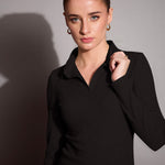 Black Rib Polo Neck Top, in Rib fabric, Unlined, Regular Length, Slim Fit, No Closure, Straight Hemline and features Polo Collar