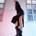 Women Black Rib Side Slit Full Sleeves Bodycon Dress