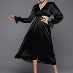Black Satin Cut Out Midi Dress, in Satin fabric, Unlined, Midi Length, Regular Fit, Zipper Closure, Straight Hemline and features Diamante Chain Detail At Neck And Waist