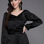Women Black Satin Gathered Crop Bustier Top