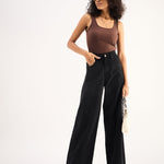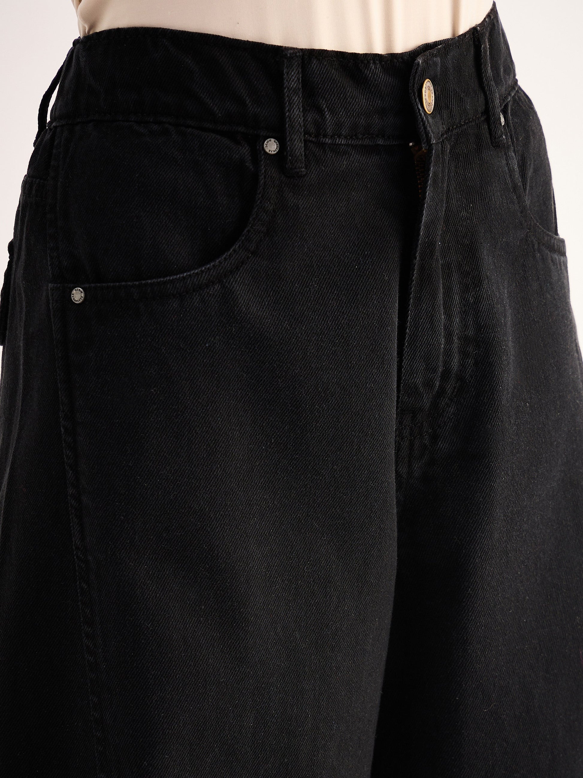 Black Seam Detail Wide Leg Jeans , in Denim fabric, Unlined, Full Length, Straight Fit/Wide Leg, Button Closure, Straight Hemline and features Seam Detail at Front