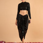 Women Black sequence Crop Top With Front Frill Skirt