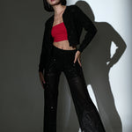 Women Black Sequin Party Straight Pants