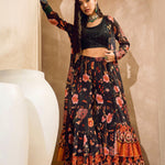 Women Black Sequins Crop Top With Floral Sharara And Shrug
