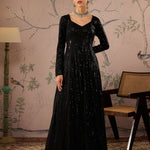 Black Sequins Sweetheart Neck Anarkali Kurta, in Sequence fabric, Butter Crepe Lining , Full Length, Fit & Flare , Drawstring Closure, Flared Hemline and features Dori Detail At Back