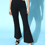 Black Side Cut Out Peekaboo Pants, in Roma fabric, Unlined, Full Length, Slim Fit, Elasticated Waistline, Straight Hemline and features Side Cut Out Detail At Waistband
