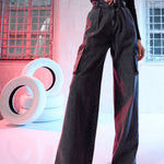 Black Side Pocket Cargo Jeans, in Denim fabric, Unlined, Full Length, Straight Fit, Button Closure, Straight Hemline and features Belt At Waist