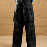 Black Side Pockets Parachute Korean Cargo Pants, in Twill Parachute fabric, Unlined, Full Length, Straight Fit, Button Closure, Straight Hemline and features Zipper At Side Pocket