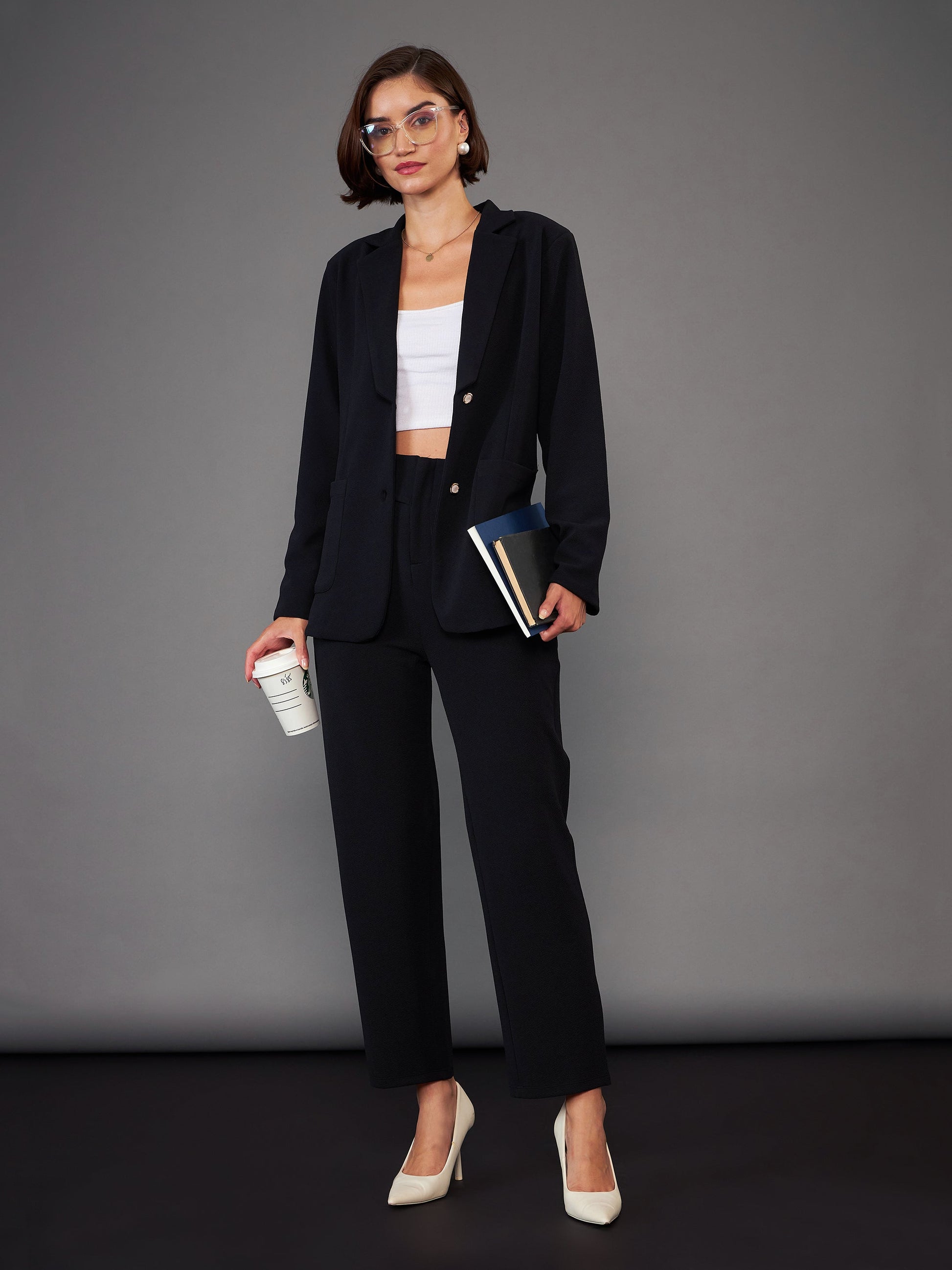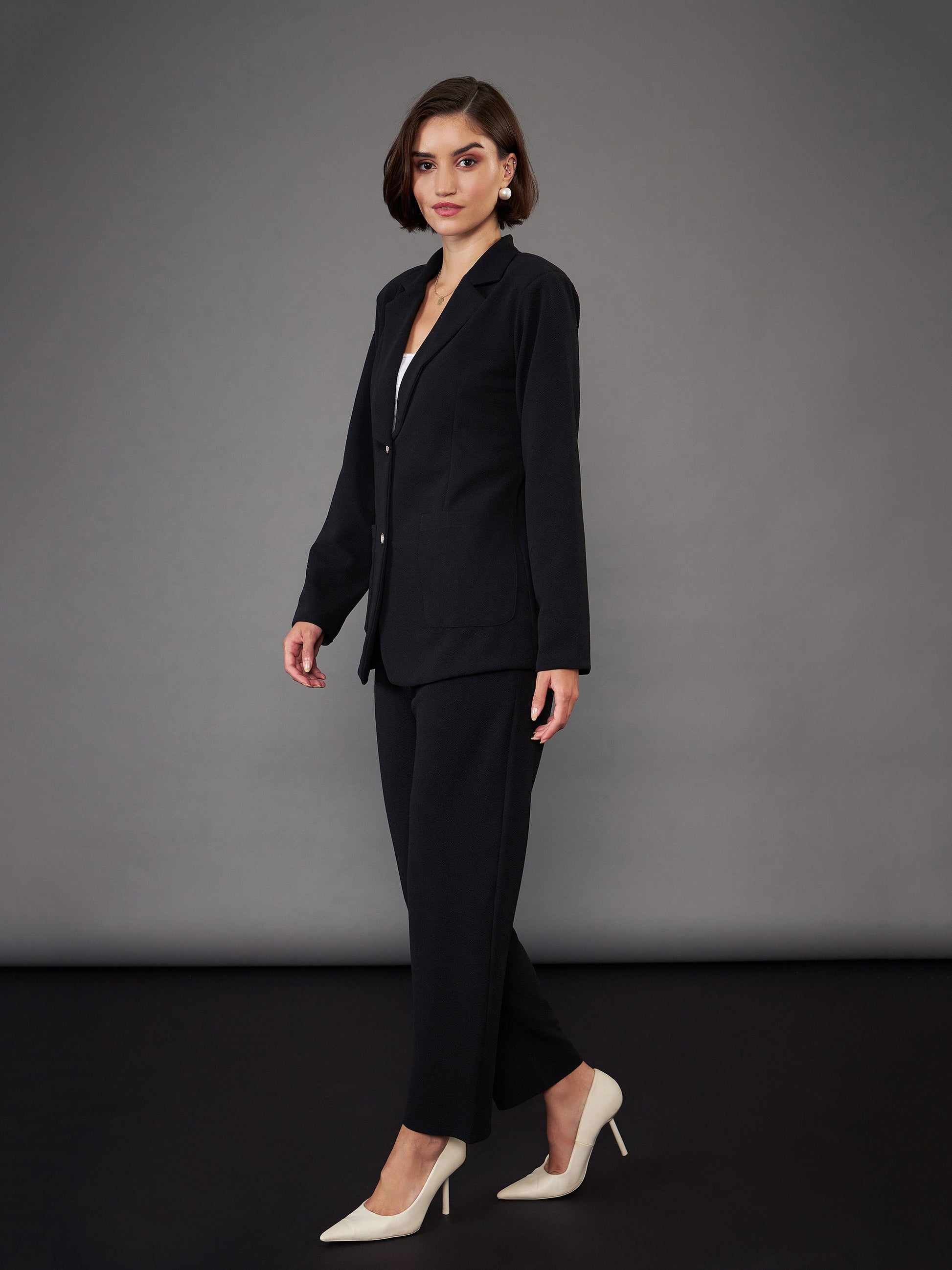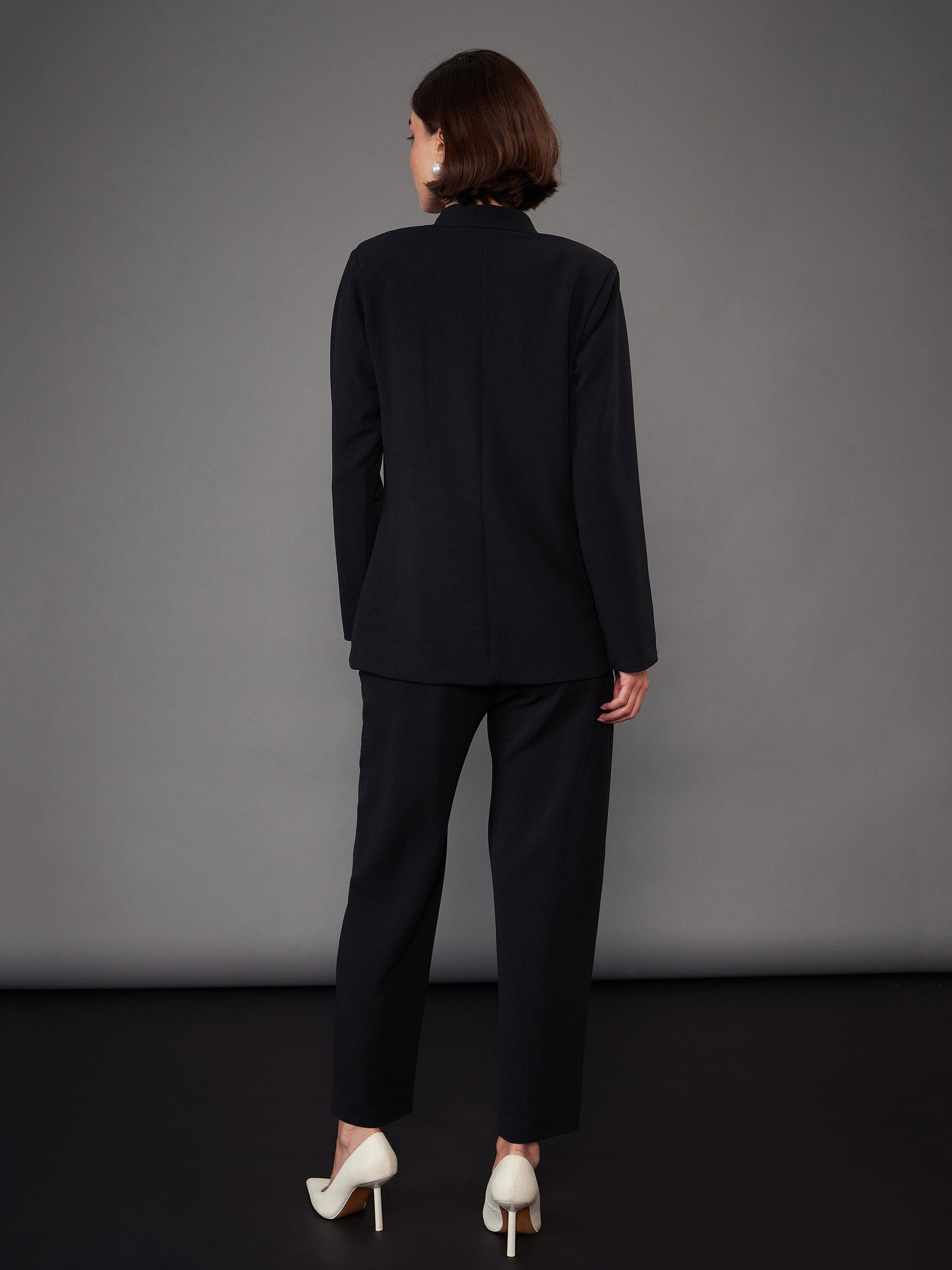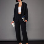 Women Black Slim Fit Blazer With Pleated Pants