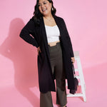 Women Black Solid Rib Front Open Shrug