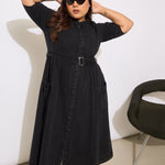 Black Tencel Front Button Midi Dress, in Tencel fabric, Unlined, Midi Length, Comfort Fit, Button Closure, Flared Hemline and features Pockets At Front