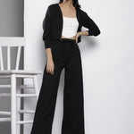 Black Terry Hooded Jacket with Track Pants, in Terry fabric, Unlined, Crop Length /Full Length, Comfort Fit, Zipper/Drawstring, Straight Hemline and features Ribbed Hem & Hood