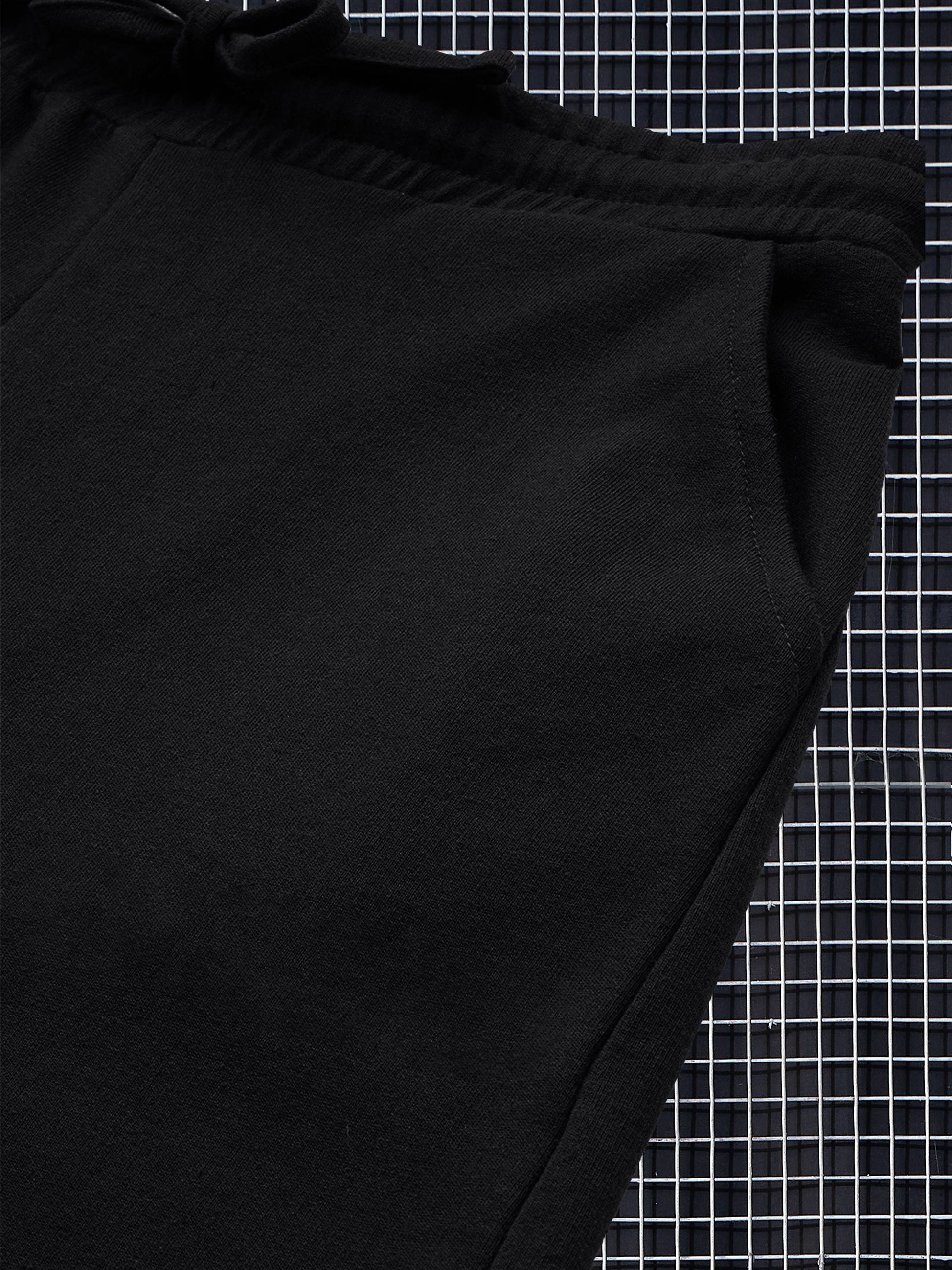 Black Terry Track Pants, in Terry fabric, Unlined, Regular Length, Comfort Fit, Drawstring Closure, Straight Hemline and features