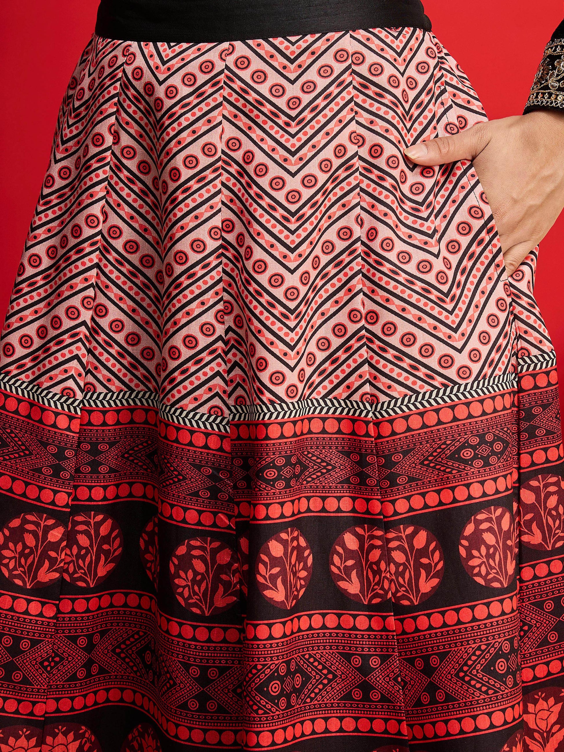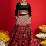 Black Velvet Crop Top With Anarkali Skirt , in Velvet fabric, Cotton Lining, Crop Length , Fit & Flare , Zipper Closure , Straight Hemline and features Embroidery Detail At Waist