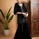 Women Black Velvet Embroidered Short Kurta With Palazzos