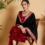 Black Velvet Lace Detail Dushala, in Velvet fabric, Unlined, Straight Hemline and features Contrast Fabric Lace Detail