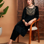 Women Black Velvet Sequin Embroidered Straight Kurta
