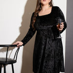 Black Velvet Square Neck Flare Dress, in Velvet fabric, Unlined, Above Knee, A line, Zipper Closure, Flared Hemline and features Diamante Chain Detail At Neck