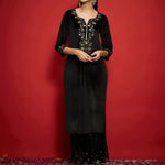Women Black Velvet Zari Embroidered Round Neck Straight Kurta