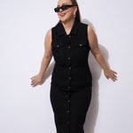 Black Wash Denim Front Button Midi Dress, in Denim Lycra fabric, Unlined, Midi Length, Comfort Fit , Button Closure, Straight Hemline and features Button Detail At Front